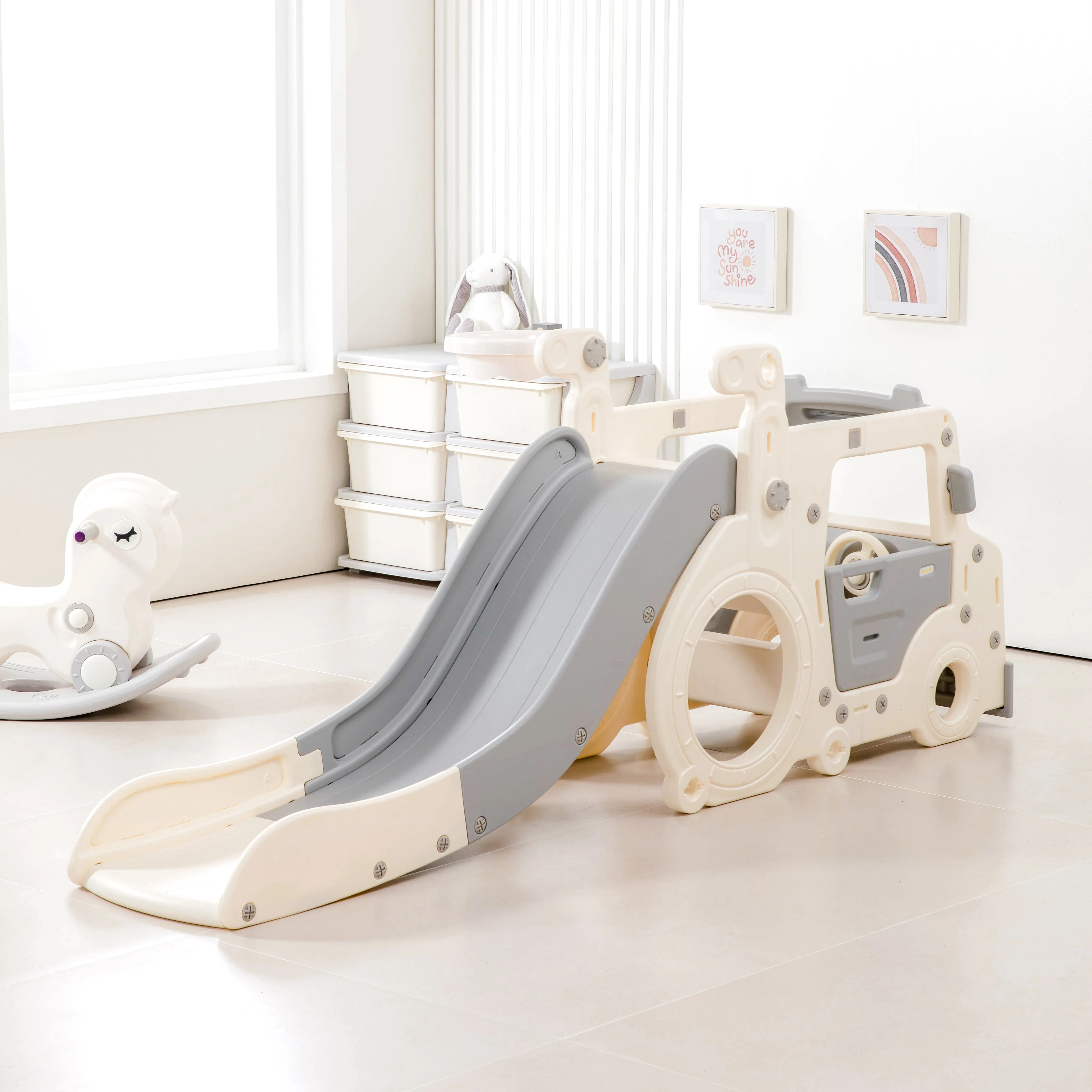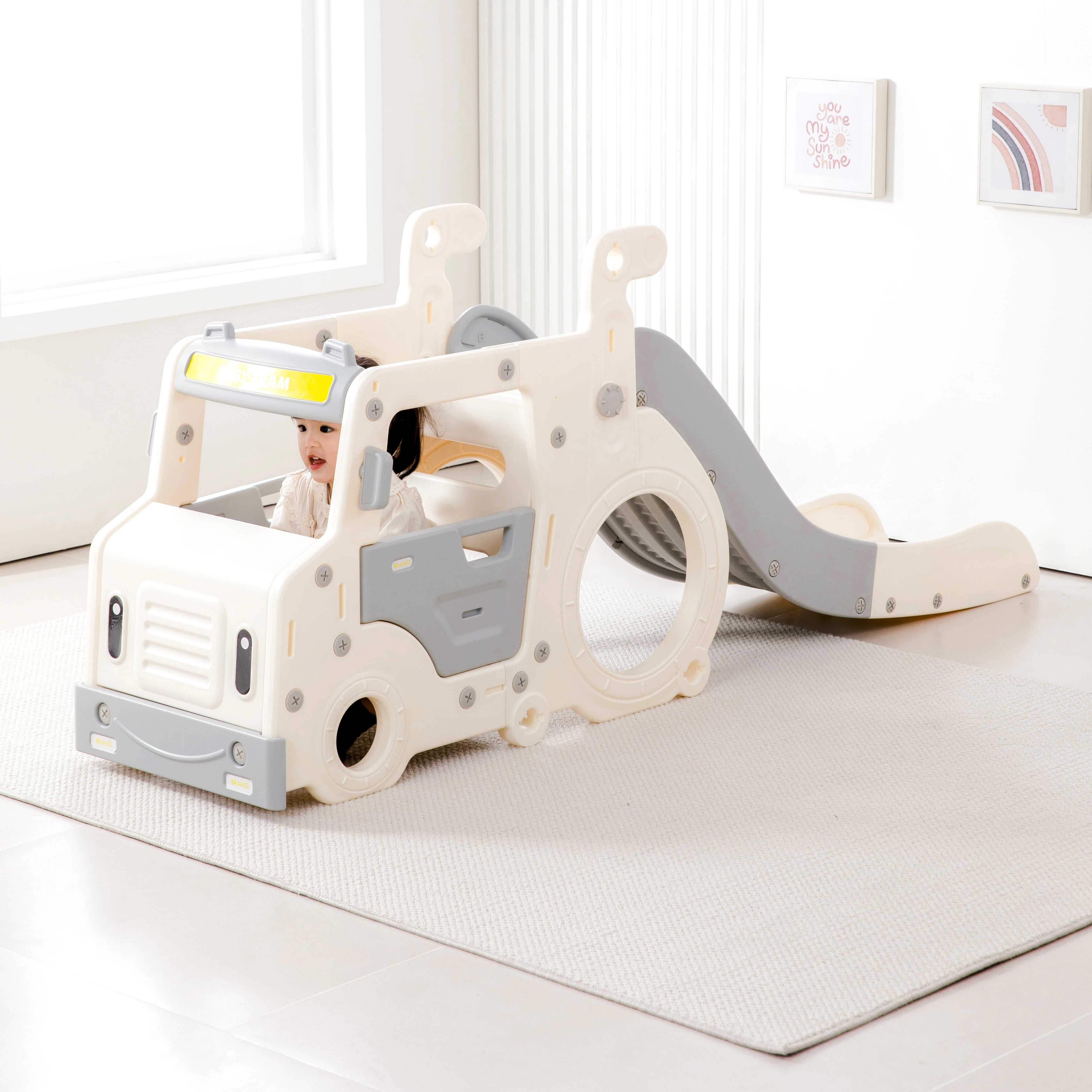 Kids Indoor Playground Car Style Sliding Toy Children Play Equipment Toddler Plastic Slides Made PE Material